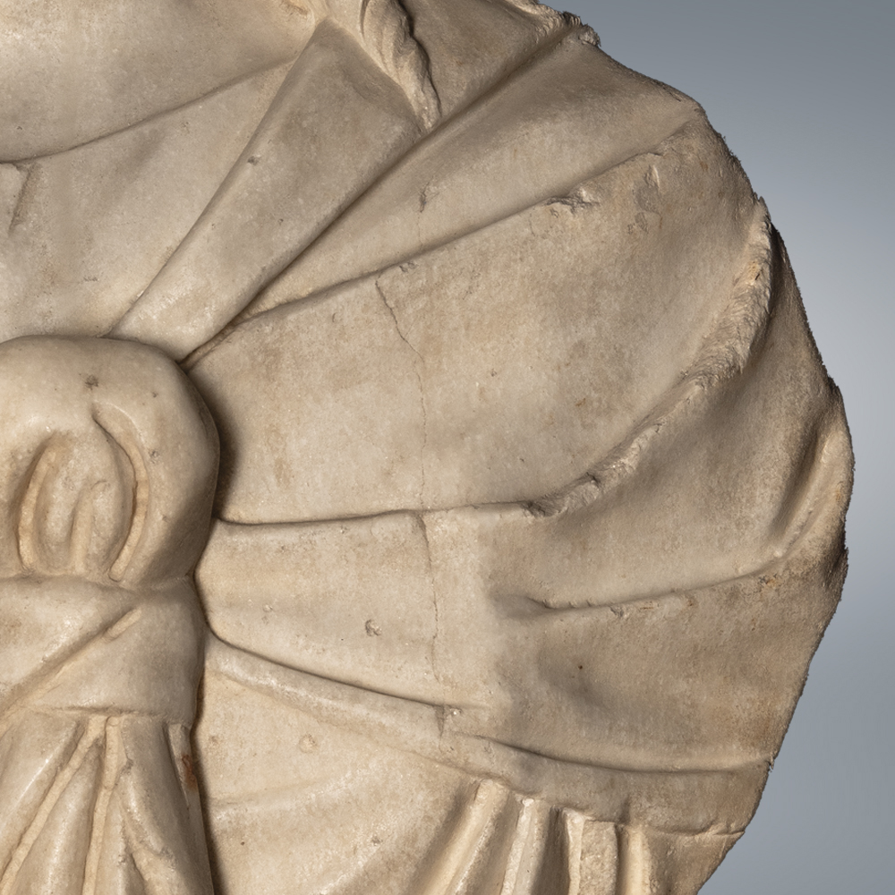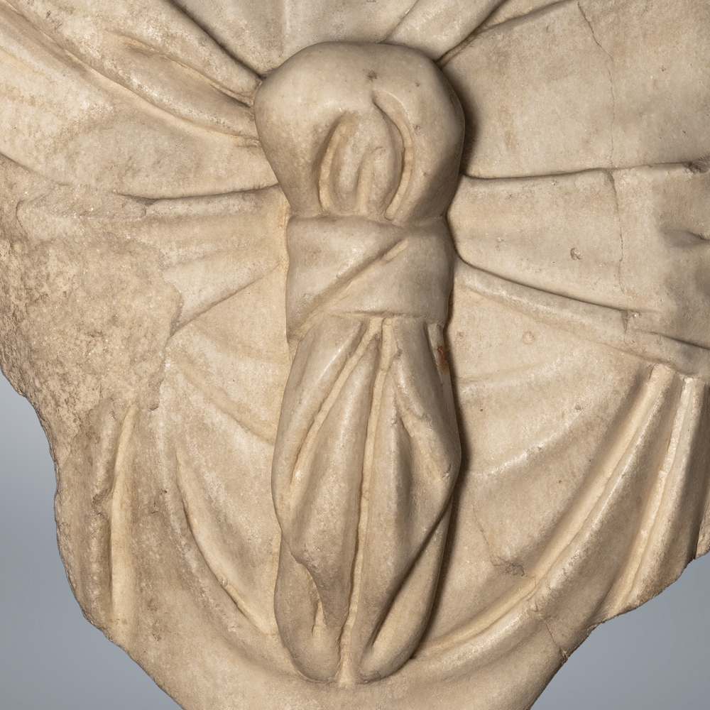 Isis este o divinitate egipteană, care a pătruns în panteonul clasic în epoca elenistică. Egiptenii o socoteau pe Isis zeiţă protectoare a grânelor, a dragostei, a căsătoriei, a fecundităţii şi a sănătăţii. Cu aceste atribute de bază, ea a pătruns în panteonul clasic, fiind asemănată cu alte zeităţi, ale căror atribute corespund vechilor ei funcţii: cu Hera, zeiţa căsătoriei, cu Demeter, zeiţa grînelor, cu Afrodita, zeiţa fecundităţii şi a dragostei, cu Hygieia, zeiţa sănătăţii. Cultul zeiţei egiptene a devenit din ce în ce mai popular şi s-a răspândit în mase. Treptat, pe măsură ce câștigă popularitate și este venerată în regiuni diferite, atributele ei se înmulțesc. Zeiţa primeşte astfel altele noi, care o fac să fie considerată, în general, ca zeiţă a vegetaţiei, a lunii, a norocului etc În felul acesta ea este asimilată cu Selene, cu Fortuna şi cu alte divinităţi, căpătând la un moment dat titlul de Isis Panthea, întruchipare a tuturor divinităţilor. În Dobrogea romană, Isis pătrunde mai târziu (secolul I sau, mai probabil, secolul al II-lea p.Chr.), atunci când se stabilesc aici negustori, soldaţi şi colonişti orientali, adepţi ai acestui cult. Zeiţa este adorată până târziu, devenind şi în aceste părţi, ca şi în alte provincii ale imperiului, una dintre divinităţile principale în perioada de sincretism. Datare: prima jumătate a sec.III p.Chr.